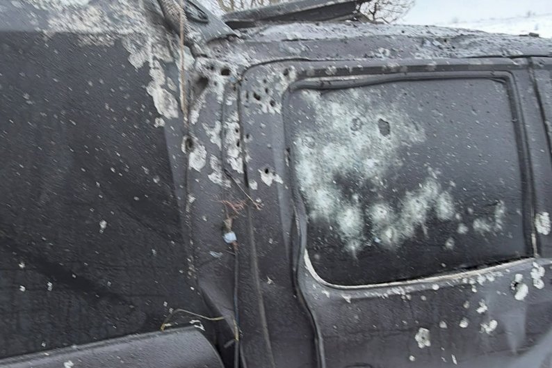Евакуаційна автівка волонтера Дениса Христова, яка зазнала пошкоджень на Харківщині. Денис Христов/Facebook