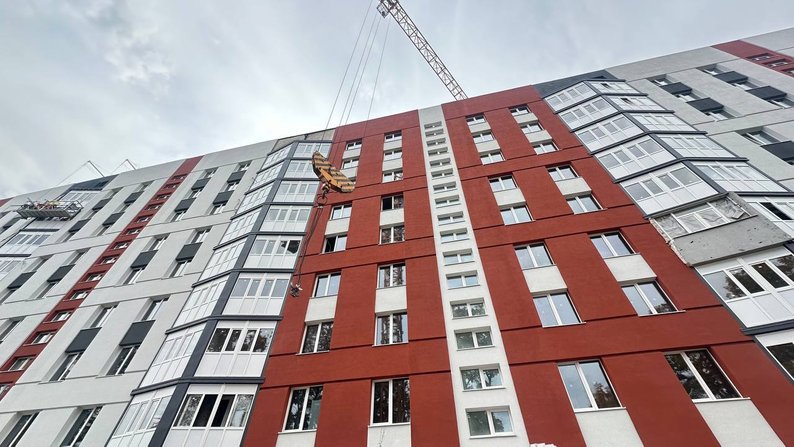 Багатоповерхівка на вулиці Бучми в Харкові, яка була пошкоджена російськими обстрілами у 2022 році, жовтень 2025 року. Харківська міська рада
