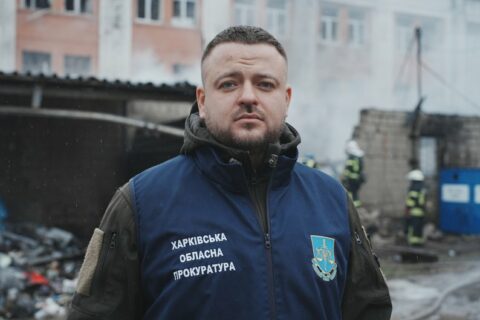 Він працює в ОВС уже сім років. Після обстрілу та евакуації пораненої дитини, він повернувся на місце події — фіксувати наслідки ворожої атаки та збирати докази.
