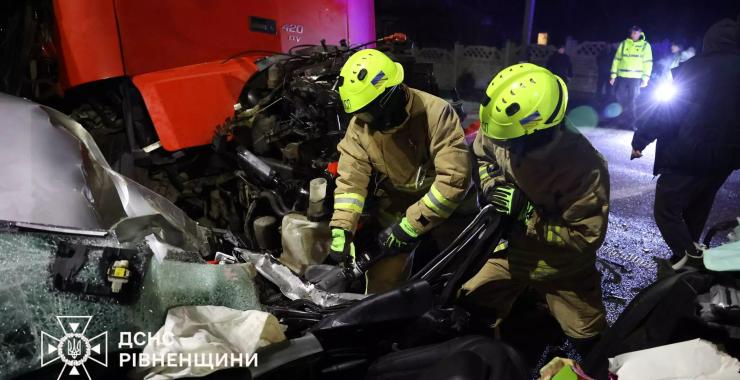 “Унаслідок зіткнення в легковому автомобілі були затиснуті двоє пасажирів. Рятувальники за допомогою спеціального обладнання деблокували жінку 1996 року народження та її доньку 2020 року народження. Ще один постраждалий вибрався з авто самостійно. Усіх потерпілих госпіталізували до Дубенської міської лікарні. Водії вантажних автомобілів не постраждали”, – йдеться в повідомленні.