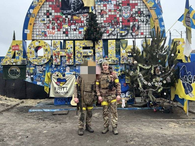 Олег Мацан з побратимом поблизу стели на в’їзді до Донецької області. Ольга Мацан