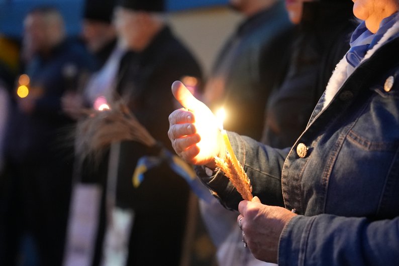 Учасники акції тримають у руках свічки та колосся пшениці, Харків, 22 листопада 2025 року. Суспільне Харків/Олександр Манченко