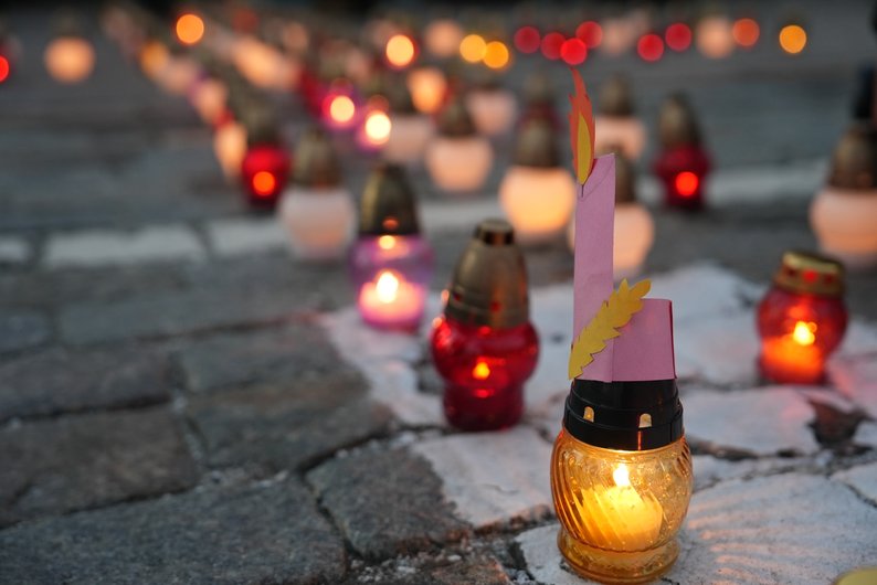 Лампадки, які запалили у центрі Харкова під час акції з вшанування пам’яті жертв Голодомору. Суспільне Харків/Олександр Манченко
