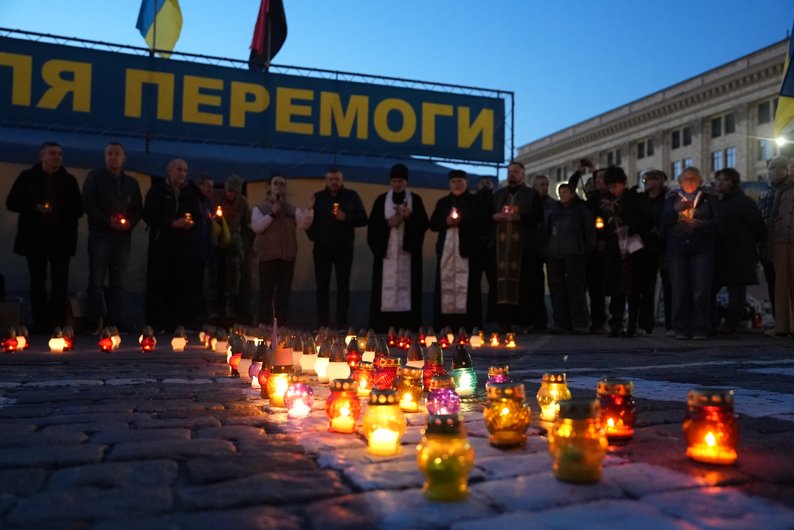 Учасники акції запалили свічки у пам’ять про жертв Голодомору, Харків, 22 листопада 2025 року. Суспільне Харків/Олександр Манченко