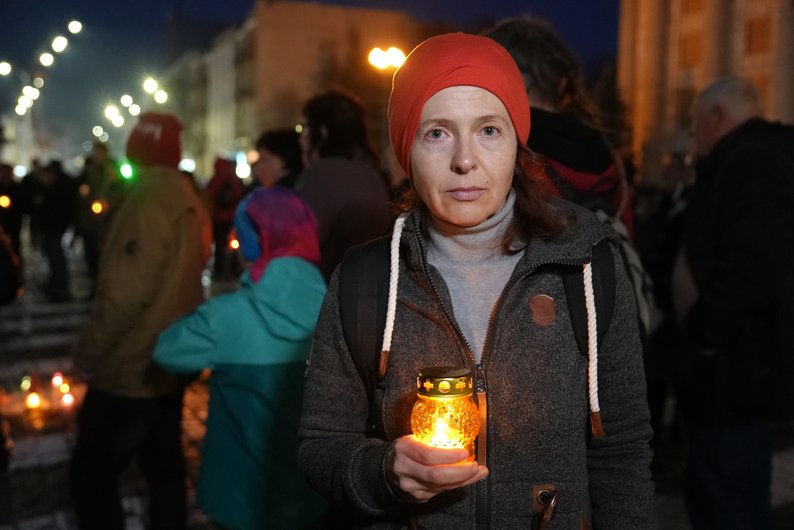 Разом із сином на акцію прийшла Марія Мосна. Харків'янка каже, вона не тільки щорічно долучається до таких заходів, а й розповідає своїй дитині про історичні події, зокрема, про радянські часи та сталінізм.
