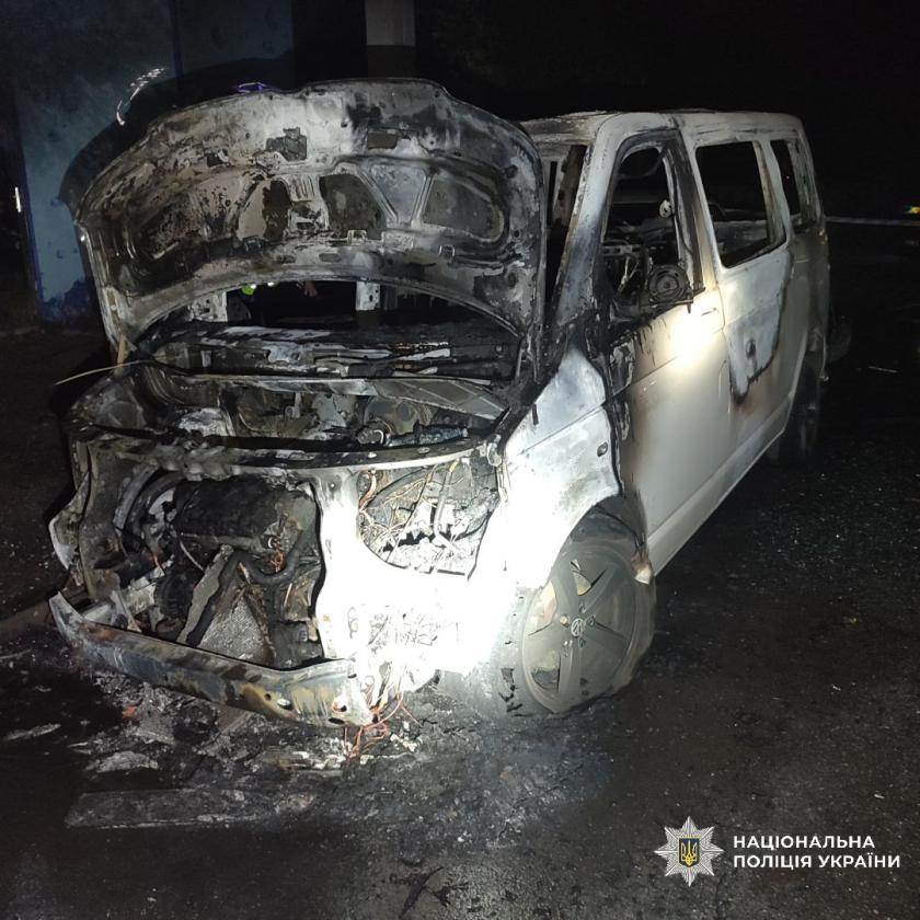 Мікроавтобус згорів повністю. Фото: ГУ Нацполіції Харківщини.
