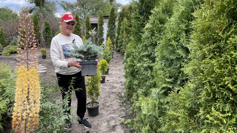 Світлана Балахніна у розсаднику біля хвойних рослин. Фото надала Світлана Балахніна
