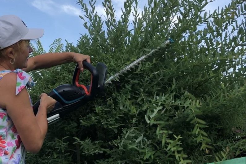 Світлана Балахніна оброблює кущі у розсаднику. Фото надала Світлана Балахніна
