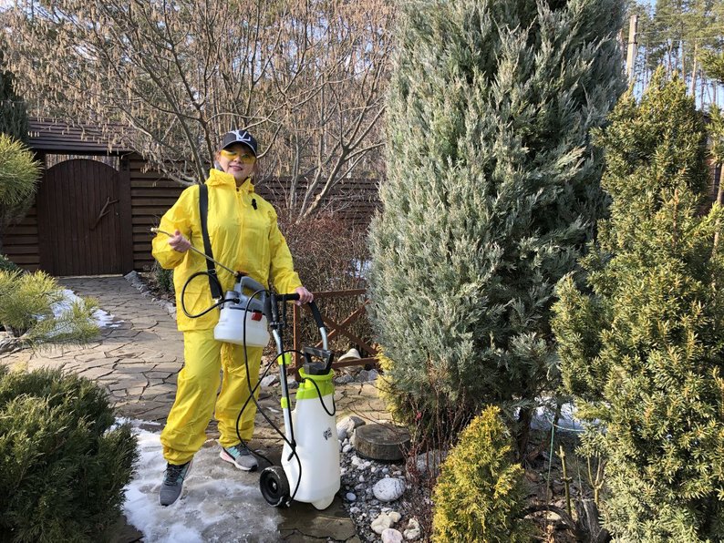 Світлана Балахніна оброблює туї у розсаднику. Фото надала Світлана Балахніна