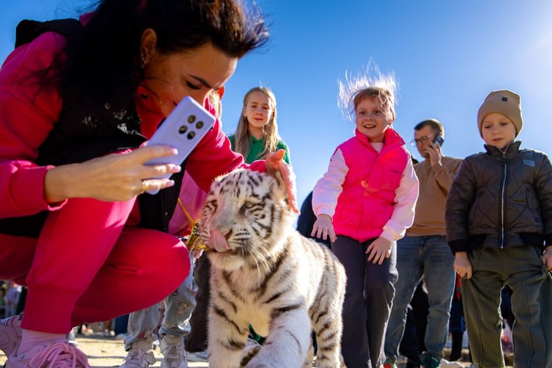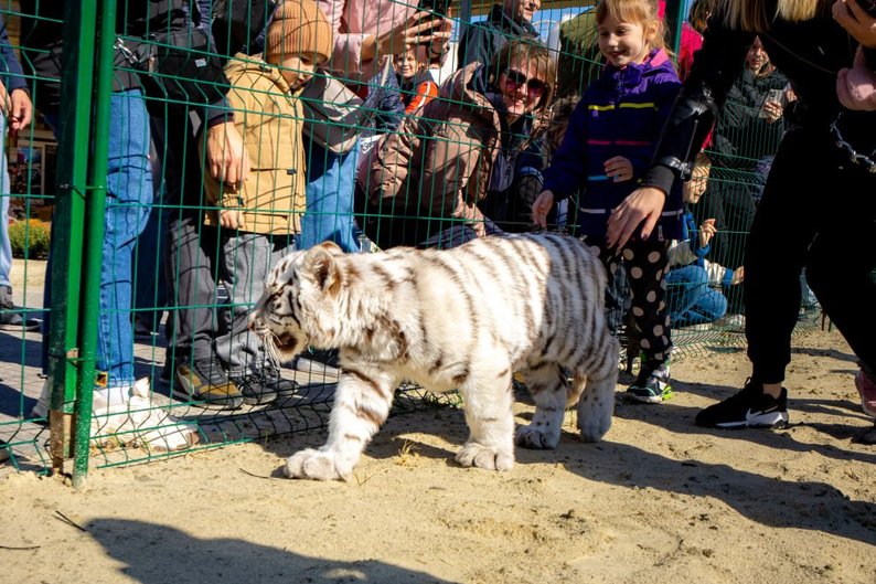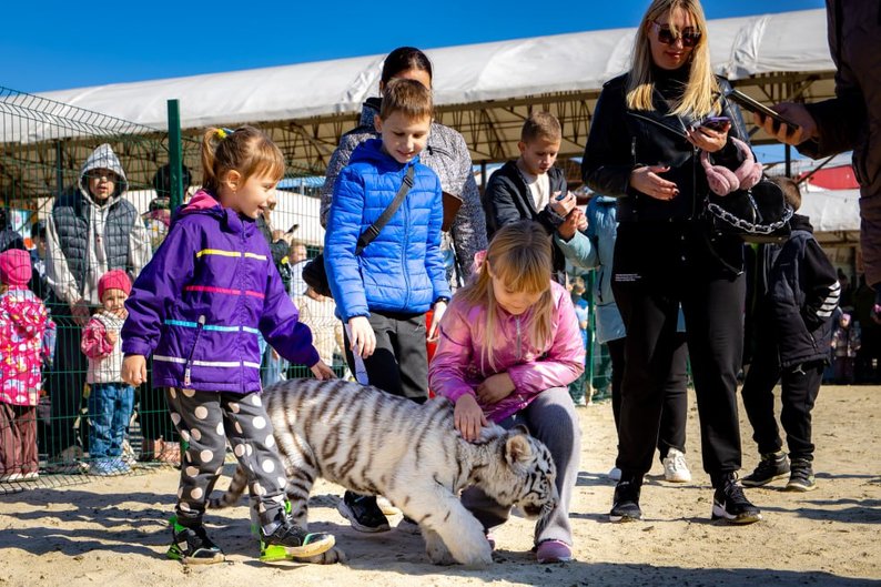 Тигреня Декстер з “Фельдман Екопарку” під час заходу на території торговельного центру “Барабашово”, жовтень 2025 року. Place Kharkiv/Telegram