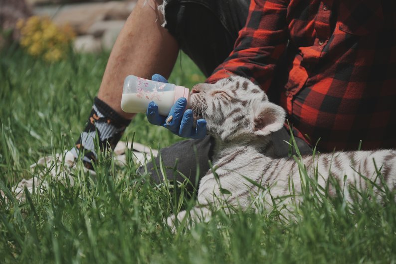 Тигренятко їсть у “Фельдман екопарку”, 3 липня 2025 року. Суспільне Харків/Вікторія Якименко