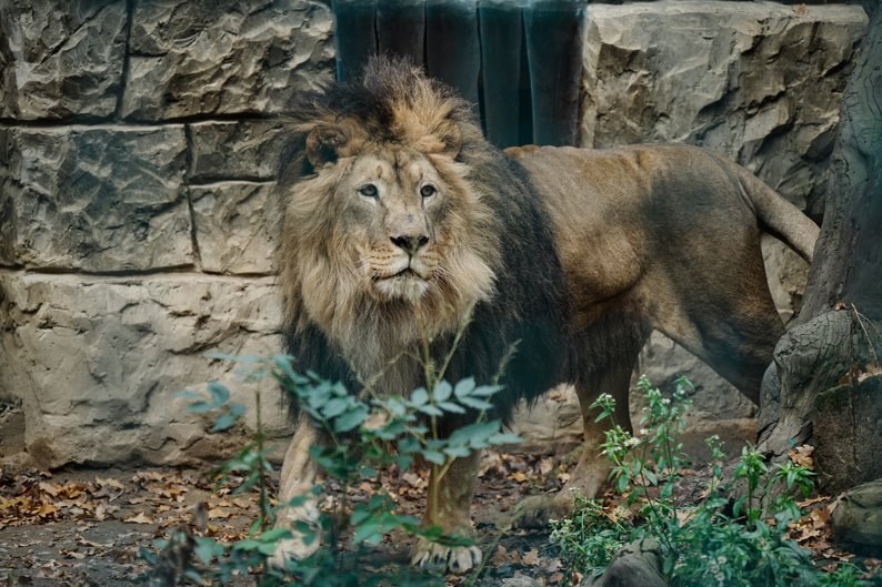 Лев, який живе в екопарку під Харковом, жовтень 2025 року. Суспільне Харків/Вікторія Якименко