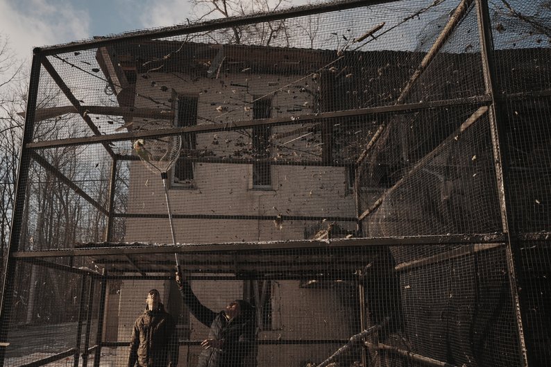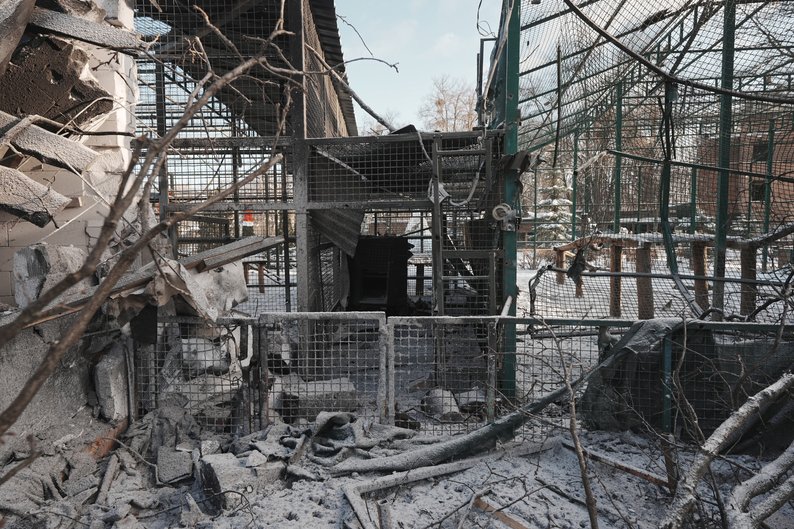 Ще одна проблема, на яку звертають увагу зоозахисники, — близькість екопарку до фронту. У 2022 році його територія опинилася в сірій зоні — туди заходили російські військові, частина приміщень була пошкоджена обстрілами. Тоді під час спроб нагодувати та евакуювати тварин загинули п’ятеро співробітників екопарку та неповнолітній волонтер, також гинули тварини.